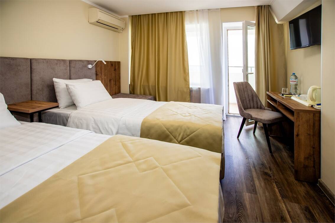 Чайник, Бесплатный Wi-Fi, Ванная комната, Кондиционер/Сплит-система, Мини-бар, Прикроватная тумбочка, Спутниковые каналы, Стол, Стул/Стулья, Телевизор, Телефон, Туалетные принадлежности, Фен, Шкаф, Кресло-кровать, Балкон/терраса, Двусп./2 односп.кровати, Зеркало, Набор одноразовой косметики, Посуда